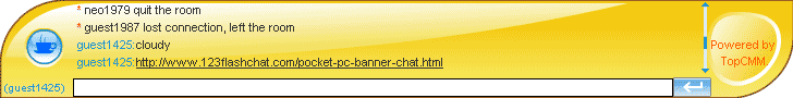 Have you ever thought of embedding a mini-chatroom to your webpage to establish connections between your business and visitors? TopCMM 123flashchat now presents the new solution, a chat module that can be used for Pocket PC or Banner Chat. It's small and neat, it looks like an animation but has full chat features(sending and receiving message in chat lobby, etc.), it can be put in any webpage( if necessary) of your site.